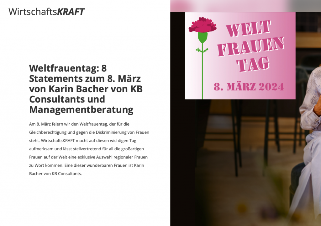 Weltfrauentag: 8 Statements zum 8. März von Karin Bacher von KB Consultants und Managementberatung