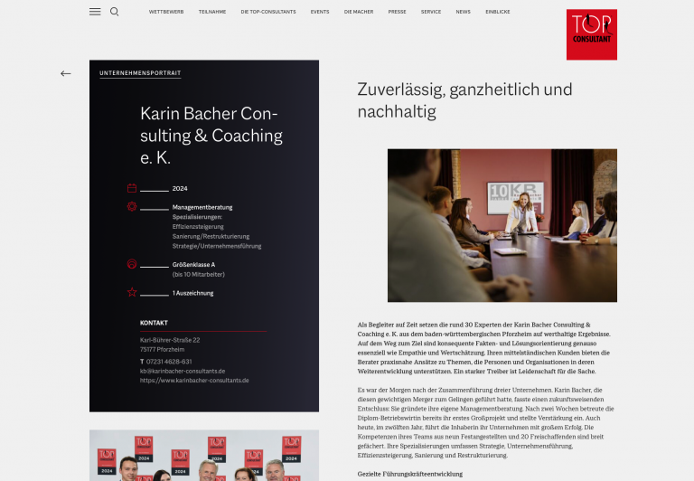 Wettbewerb „Top Consultants“ zeichnet Karin Bacher Consultants aus